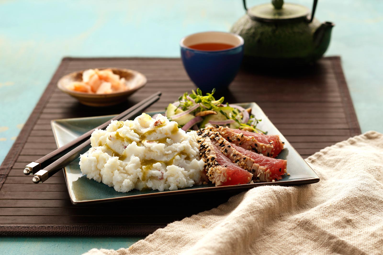 Saucisse grillée, jus de viande à la moutarde à l’ancienne